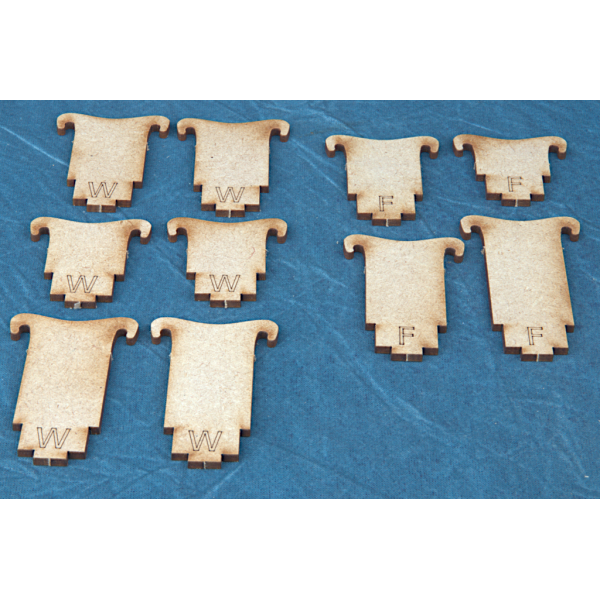 Three pairs of varying height wing supports are provided. The shortest support projects 18mm above the top of the base. The longest projects 38mm.